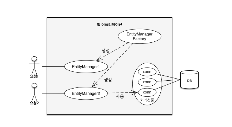 하나의 트랜잭션을 이루기 위해서 EntityManagerFactory에서 EntityManager를 생성해서 사용한다.