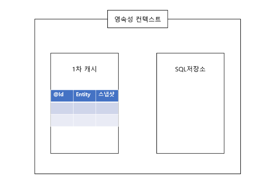 영속성 컨텍스트 내부는 1차 캐시와 SQL저장소로 이루어진다.